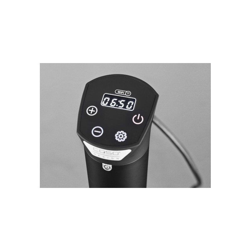 Caso SV 1200 Smart. Tipo de produto: Circulador de imersão sous vide, Cor do produto: Preto, Prateado, Tipo de controlo: Toque. Temperatura (máx.): 90 °C, Duração máxima do temporizador: 100 h, Código de protecão internacional (IP): IPX7. Potência: 1200 W, Voltagem de entrada AC: 220 - 240 V, Frequência de entrada AC: 50 / 60 Hz. Comprimento: 60 mm, Largura: 85 mm, Altura: 330 mm