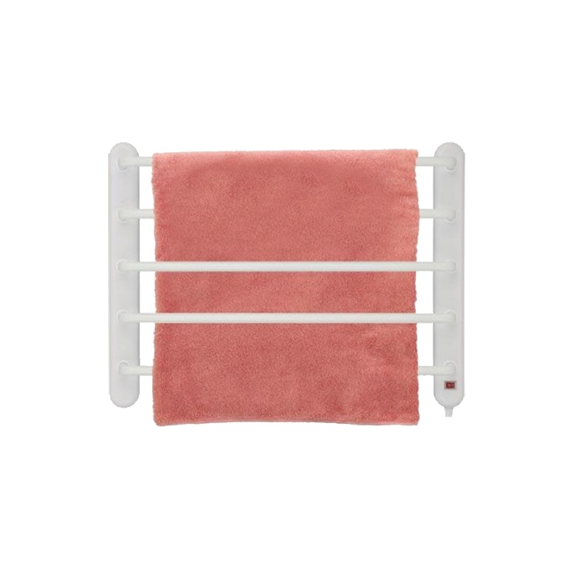 Potência 90WManuseávelFácil instalaçãoDuradouroSeca e aquece as toalhasIndicador luminoso de funcionamentoAcessórios para colocar verticalmente na casa de banhoAcabamento brancoDimensões: 450x600x95mm