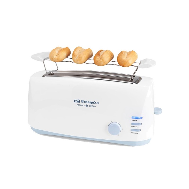 Potência: 1400 W. Desligamento automático. 2 ranhuras longas para 4 fatias. Função de descongelação. Função de reaquecimento. Função de parada rápida. Bandeja de migalhas. Aquecedor de pão incluído. 6 configurações de torradas. Armazenamento do cabo. Conexão: 230 V ~ 50 Hz